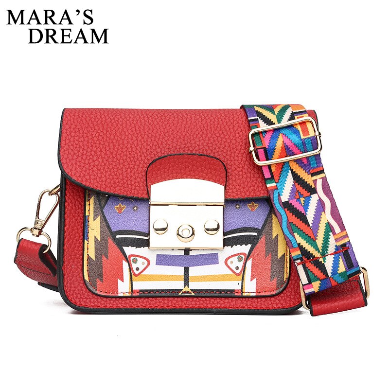 Mara's Dream Fashion Wide Shoulder Messenger Bag Summer PU Leather Patchwork Color Hasp Mini Flap Funny Bag Lady Clutch Handbags